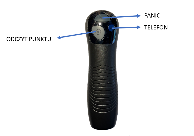 Służy do odczytu punktu RFID zamontowanego na obiekcie. Przy odbijaniu punktów należy najpierw nacisnąć przycisk , aż urządzenie zawibruje oraz wyda pojedynczy dźwięk. Po tym należy przyłożyć urządzenie do punktu , po czym powinien nastąpić podwójny dźwięk świadczący o prawidłowym zarejestrowaniu punktu