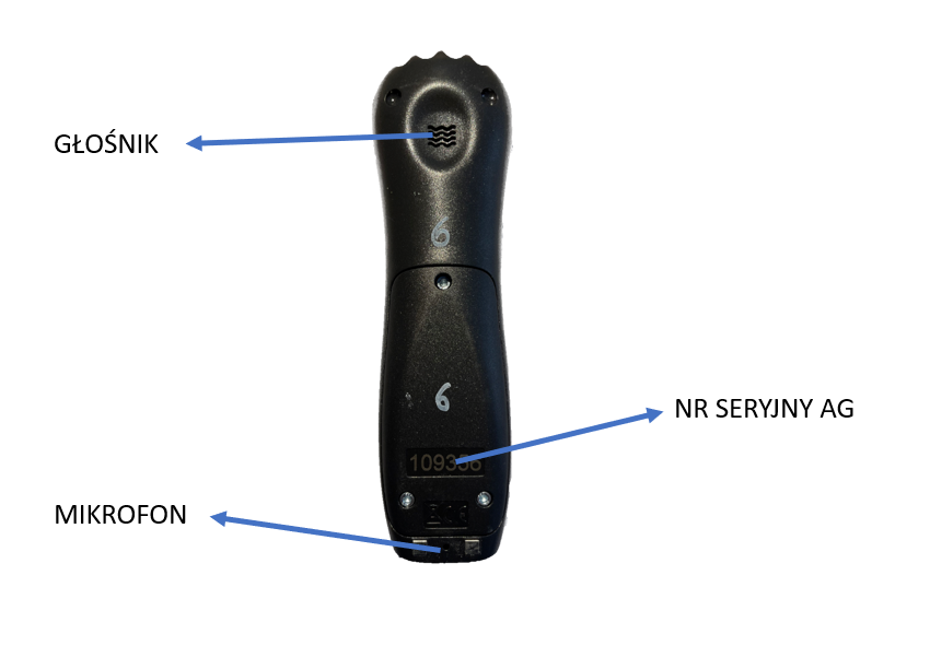 Z tyłu urządzenia znajduje się głośnik oraz mikrofon do rozmowy VOID. Znajduje się tam również klapka z wybitym nr seryjnym przykręcona na 3 śruby. Nie należy ODKRĘCAĆ KLAPKI , ponieważ spowoduje to wyzwolenie alarmu sabotażowego do SMA. Klapkę powinien odkręcać tylko kierownik lub osoba nadzorująca obiekt po wcześniejszym poinformowaniu pracownika SMA o zamiarze odkręcenia klapki. Po takiej informacji pracownik SMA będzie mógł wyzwolić serwis na danym obiekcie, przez co nie będą przez ten czas przychodzić alarmy z AG.